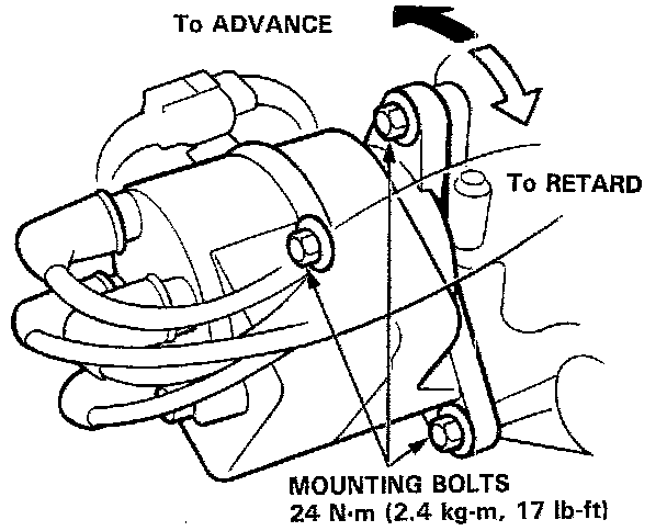 6. Tighten the Adjusting Bolts, and recheck the Timing.