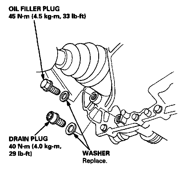 4. Reinstall the drain plug with a new washer, and refill the transmission oil to the proper level.