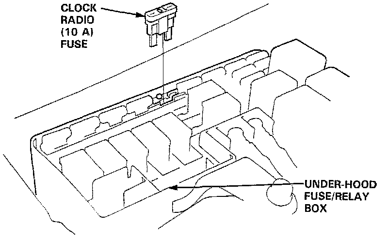 - The Radio may have a coded theft protection circuit. Be sure you get the customer's code number before removing the CLOCK RADIO (10 A) fuse.