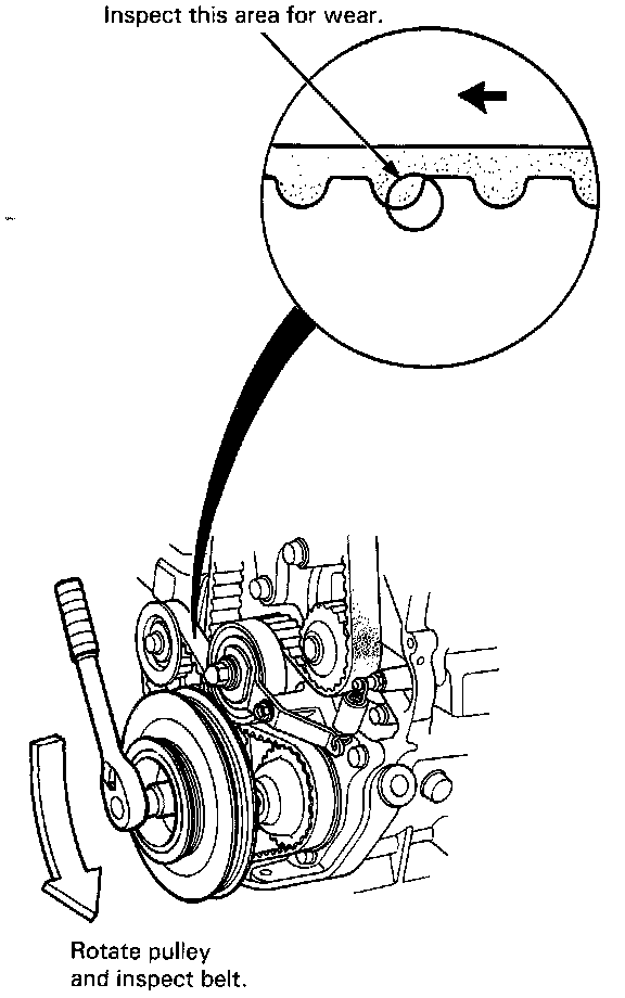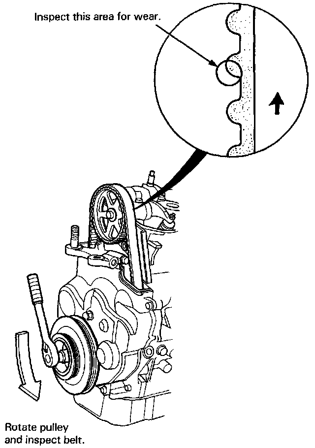 4. Inspect the timing belt for cracks and oil or coolant soaking.
