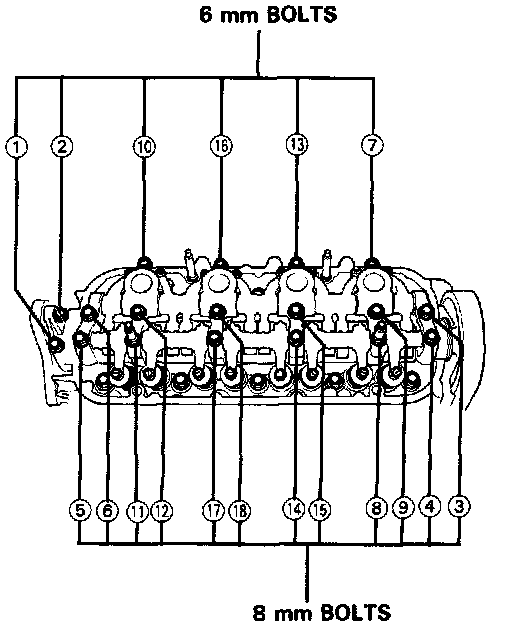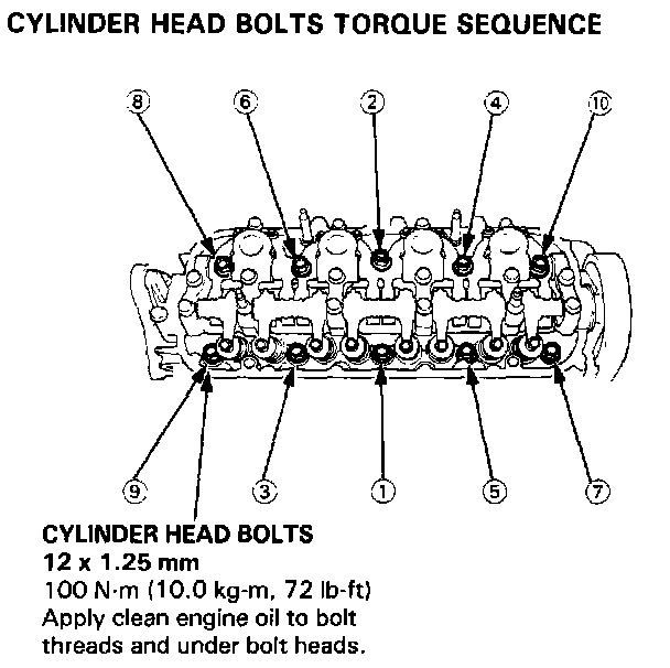 Torque cylinder head attaching bolts in three steps; first step to 29 ft. lbs., second step to 51 ft. lbs., third step to 72 ft. lbs.