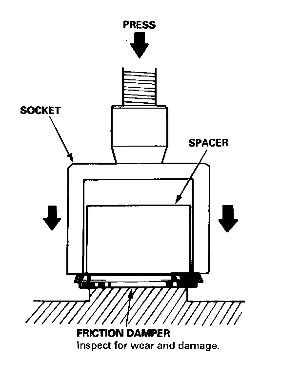 4. Remove the friction damper from the spacer using a press and a socket as shown.