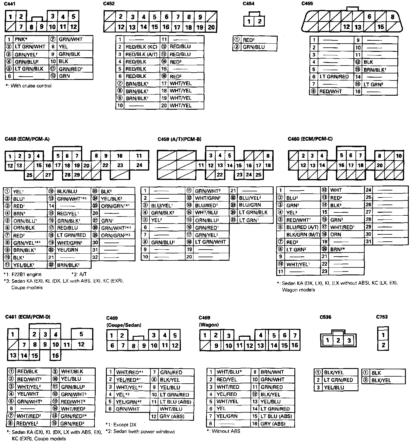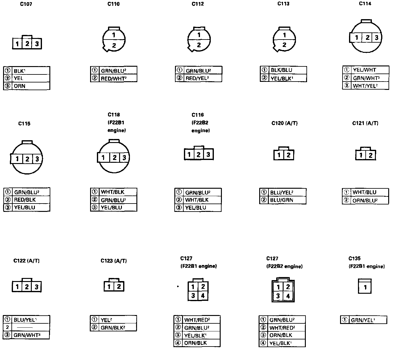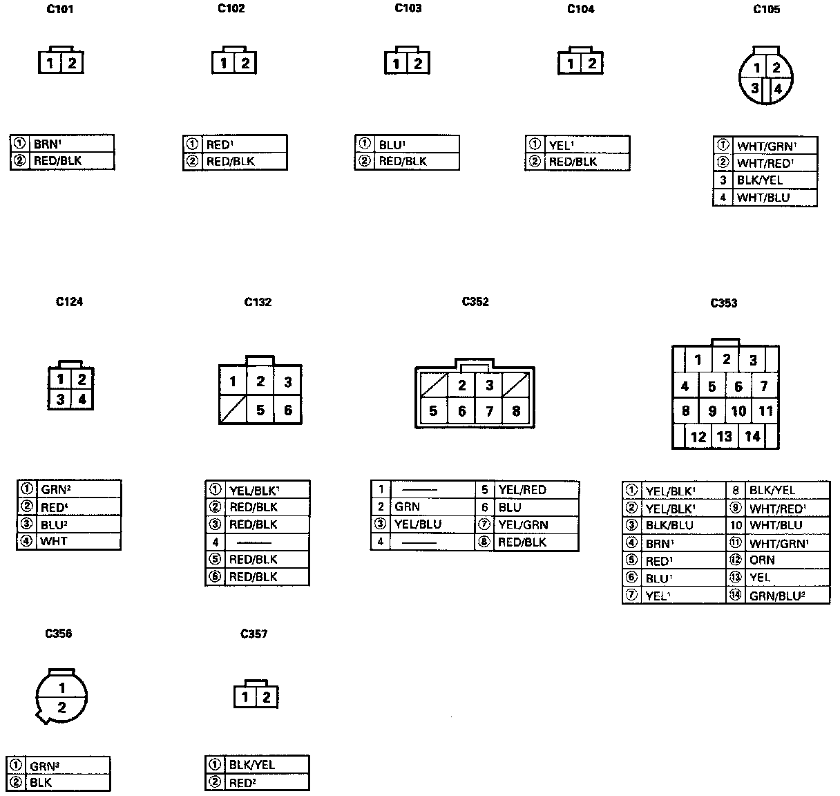 - Different wires with the same color have been given a number suffix to distinguish them (for example, YEL/BLK1 and YEL/BLK2 are not the same).