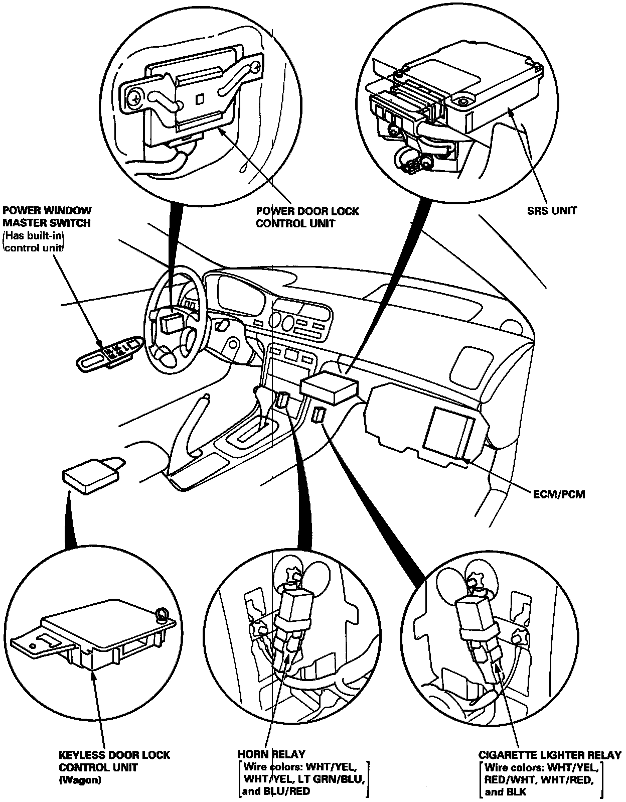Relay And Control Unit Locations - Dashboard And Floor: