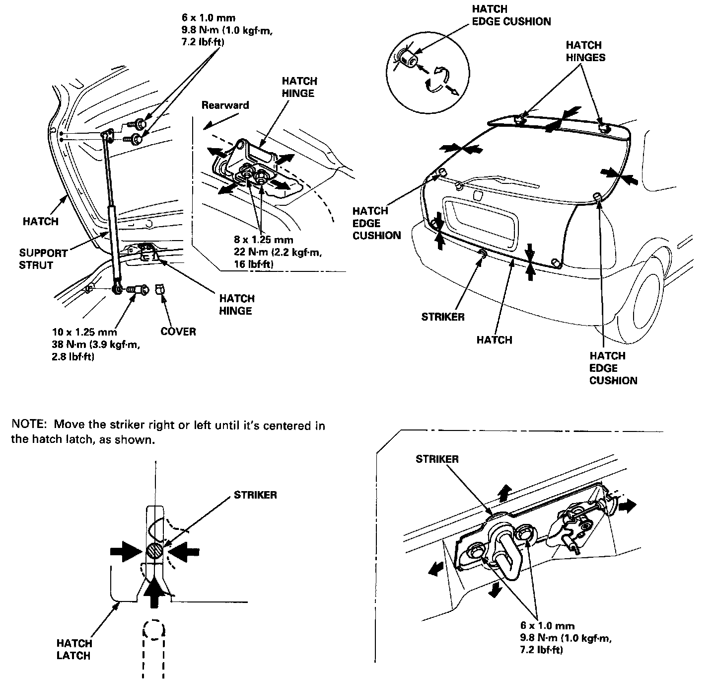 - To adjust, remove both hatch side trim and the rear roof trim.
