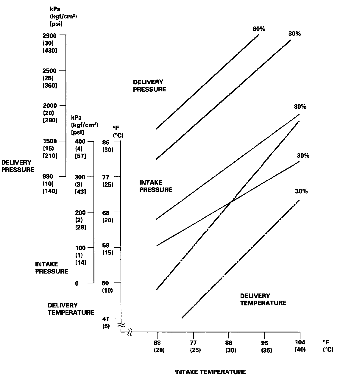 - From each point, draw a horizontal line across the delivery temperature.