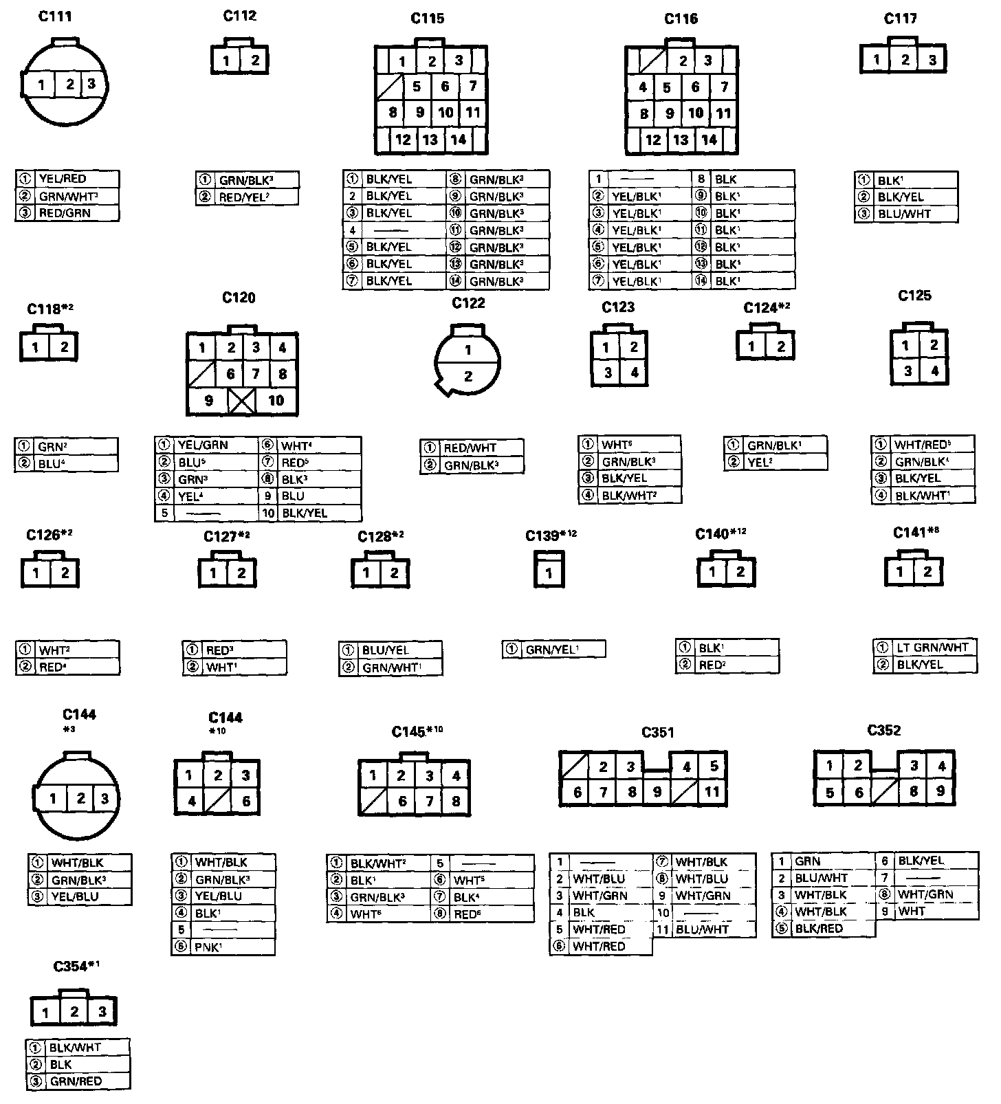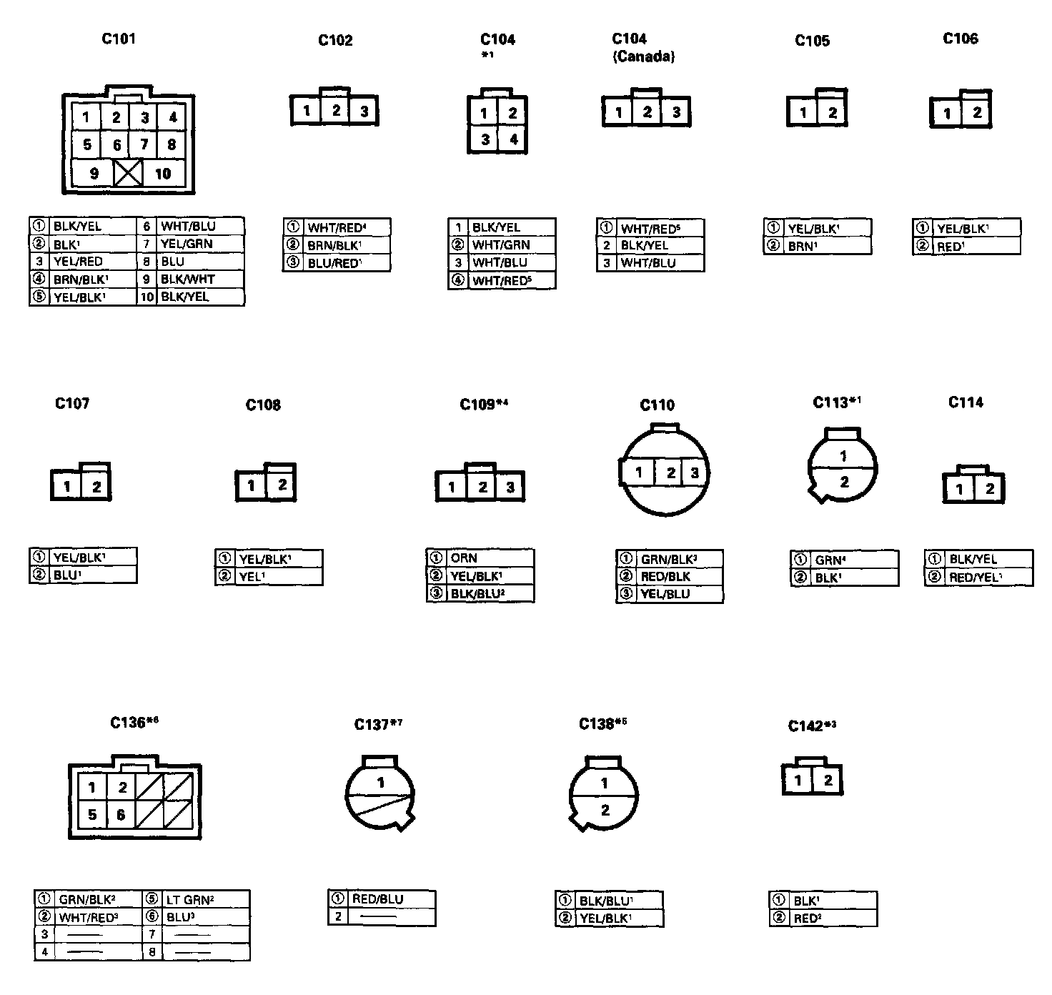 - Different wires with the same color have been given a number suffix to distinguish them (for example, YEL/BLK1 and YEL/BLK2 are not the same).