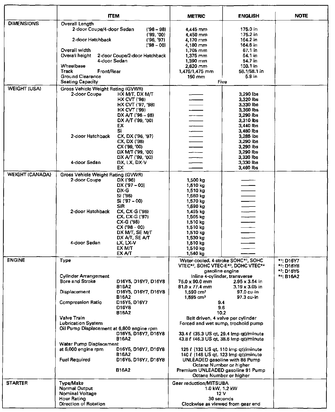 Civic Sedan L4-1.6L SOHC (VTEC)