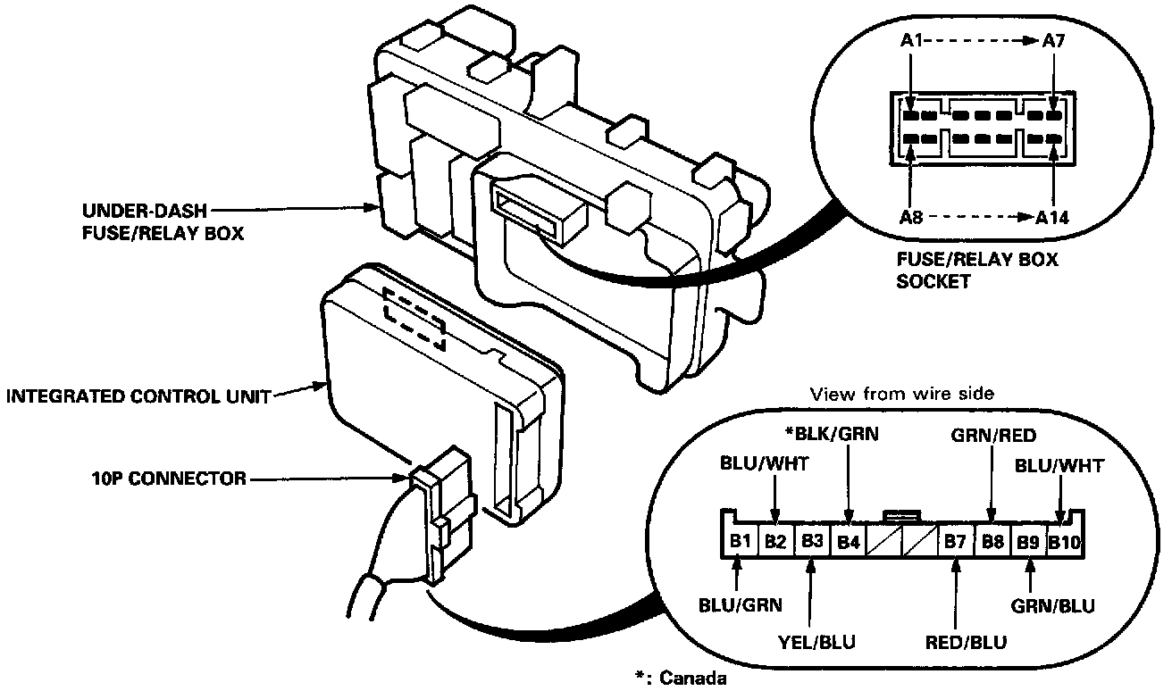 2. Remove the integrated control unit from the under- dash fuse/relay box.