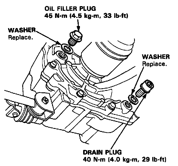 4. Reinstall the drain plug with a new washer, and refill the transmission with the recommended oil to the proper level.