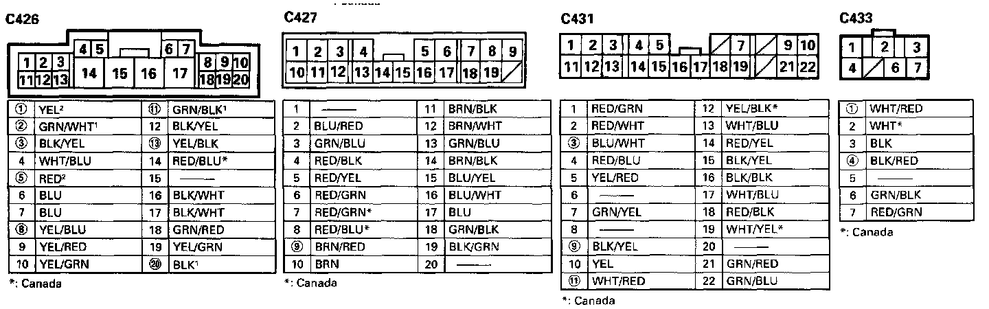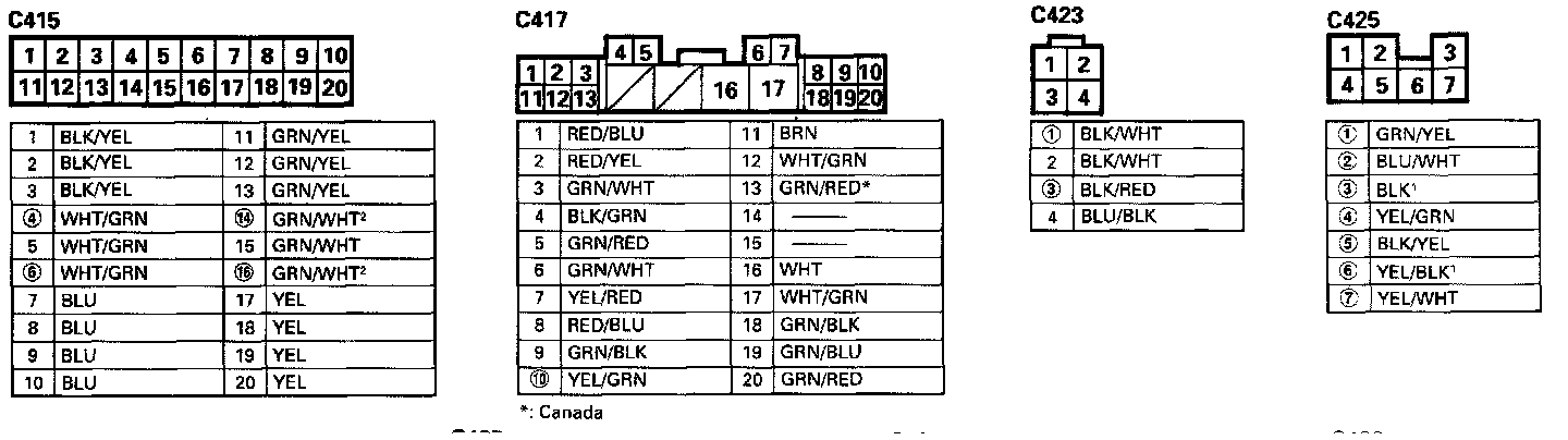 - Different wires with the same color have been given a number suffix to distinguish them (for example, YEL/BLK1 and YEL/BLK2 are not the same).