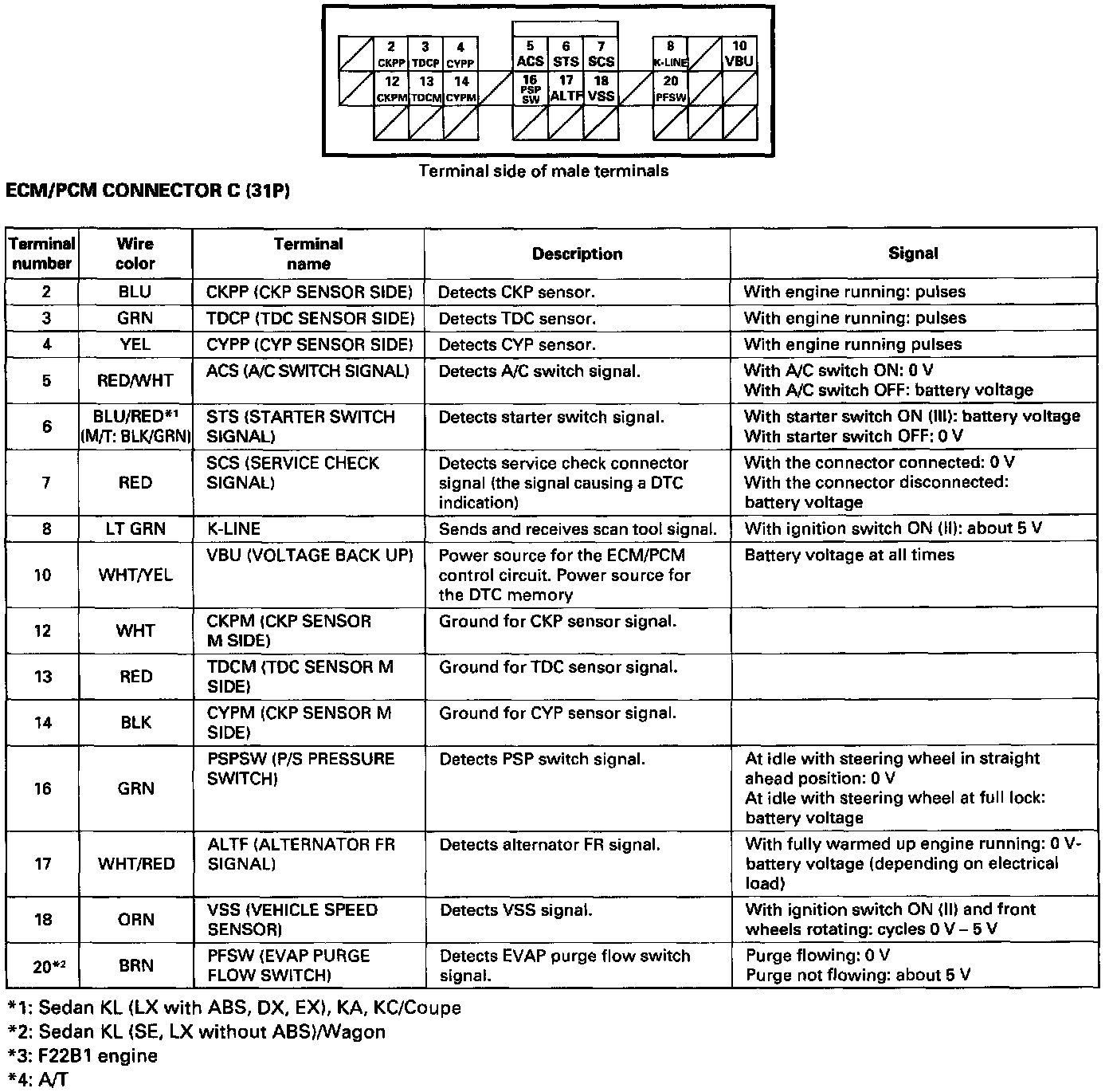 ENGINE CONTROL MODULE TERMINAL ARRANGEMENT