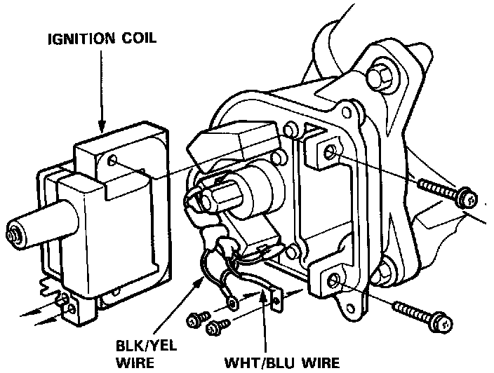 3. Remove the two screws and slide the ignition coil out of the distributor ignition (DI) housing.