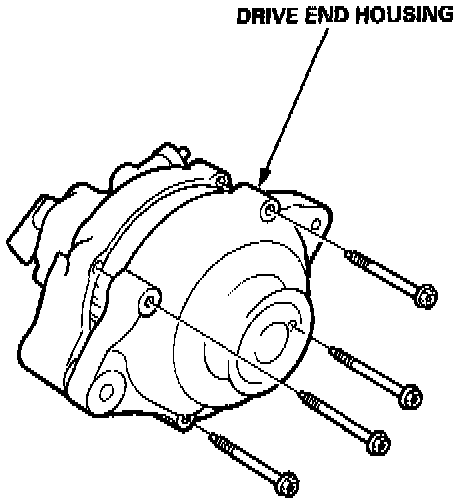 2. Separate the rear housing from the stator/rectifier assembly by removing the four screws and the terminal nut from the rear housing.