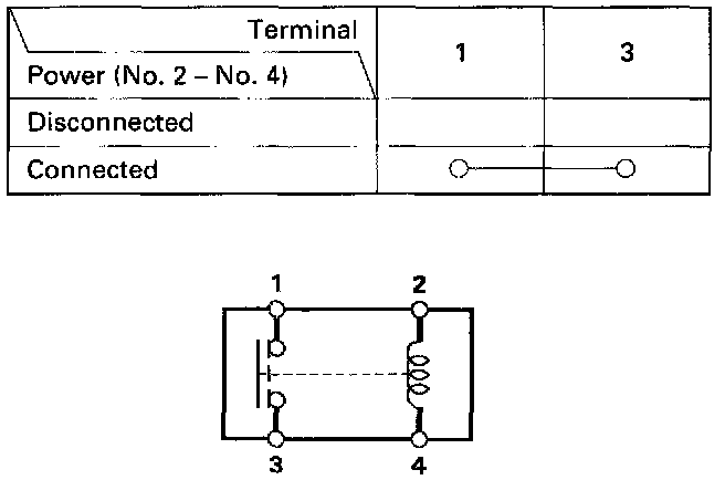 ^ There should be continuity between the No. 1 and No. 3 terminals when power and ground are connected to the No. 2 and No. 4 terminals.