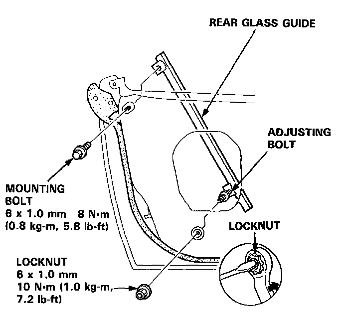 8. Remove the locknut, then remove the rear glass guide.