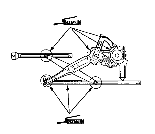 10. Grease all the sliding surfaces of the window regulator where shown.