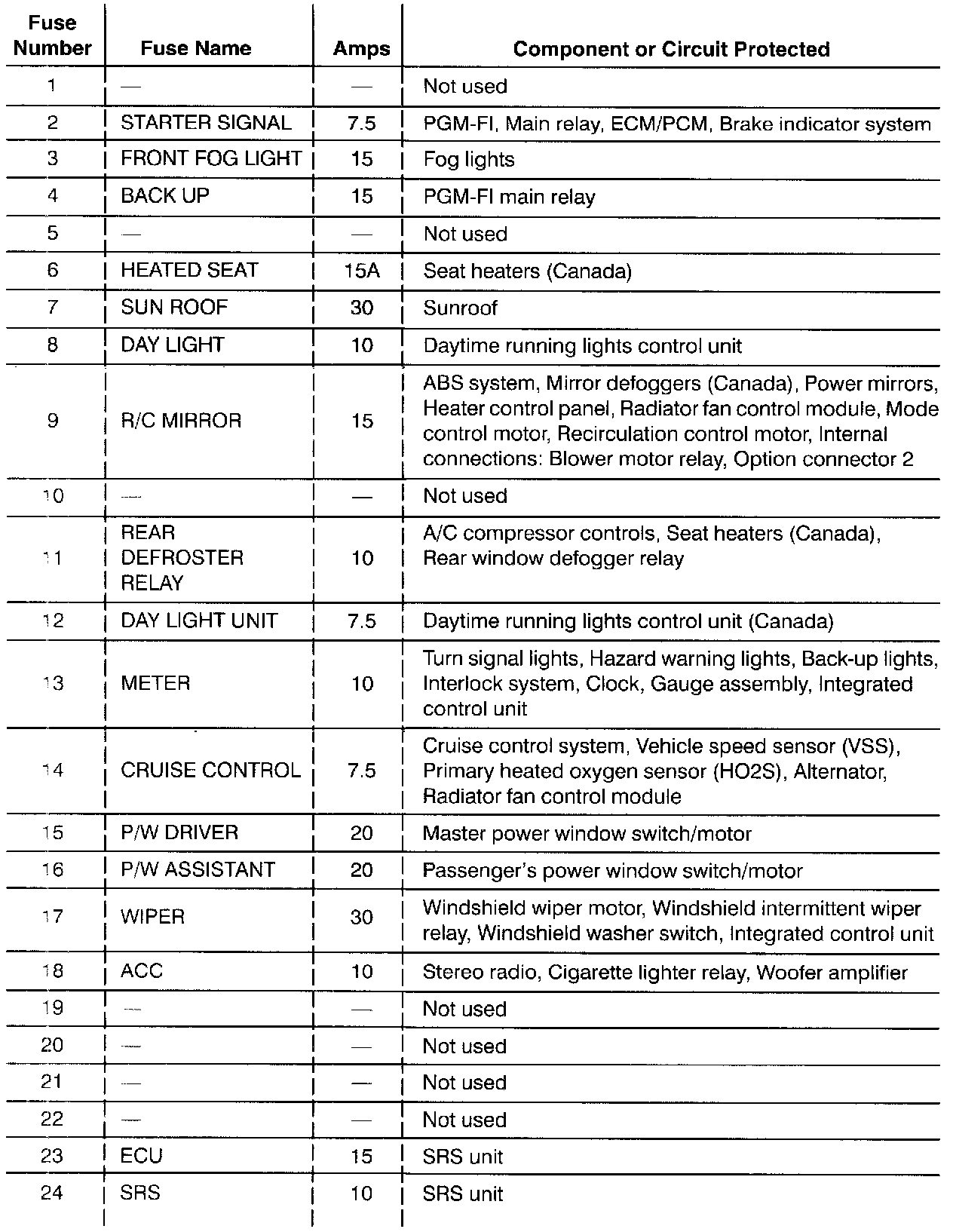 Fuse/Relay Information- Under-dash Fuse/Relay Box (Part2 Of 3):