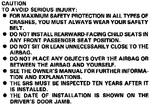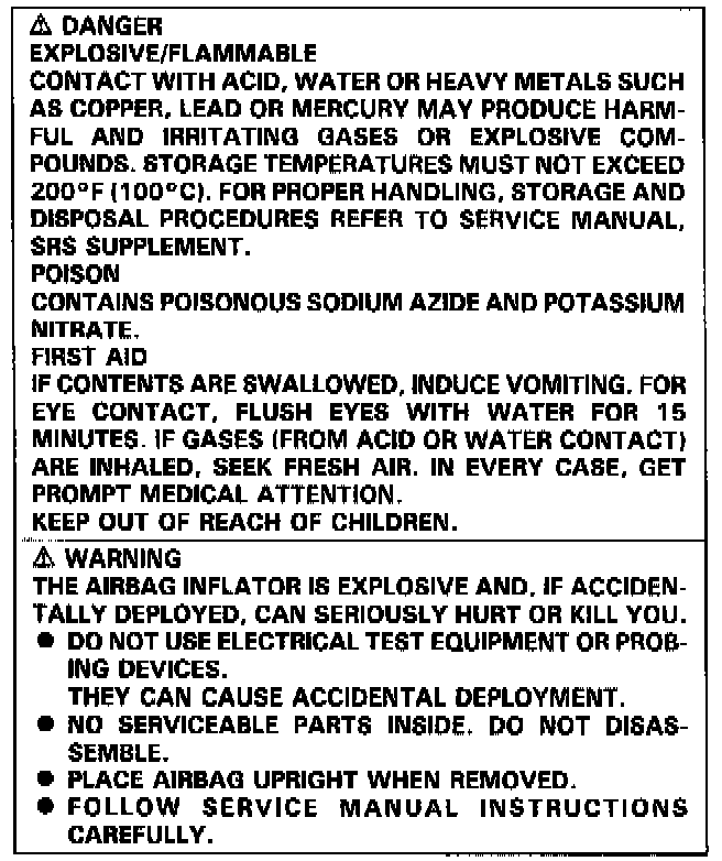 F: FRONT SEAT PASSENGER AIRBAG MODULE DANGER