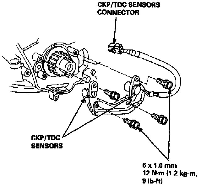 12. Disconnect the CKP/TDC sensors connector, then remove the CKP/TDC sensors.