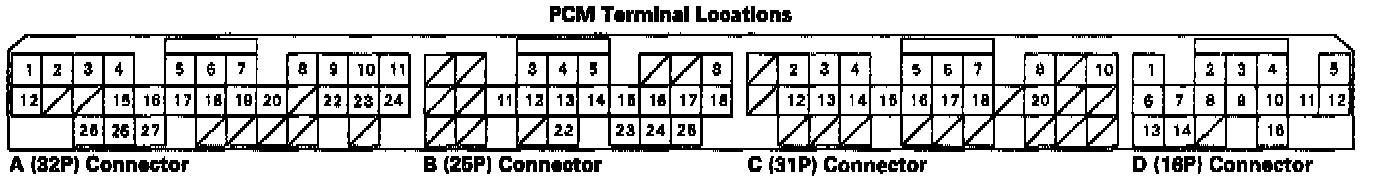 The PCM terminal voltage and measuring conditions are shown for the connector terminals that are related to the A/T control system. The other PCM terminal voltage and measuring conditions are described in Normal Scan Data Values under Computers and Control Systems. Testing and Inspection