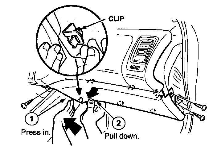 3. Remove the passenger's-side dashboard lower cover (three screws and seven clips).