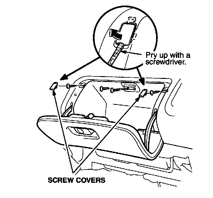 5. Pry out the two screw covers, then remove the four screws from the top of the glove box.