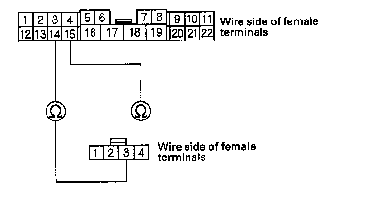 8. Check for continuity between the terminals as shown: