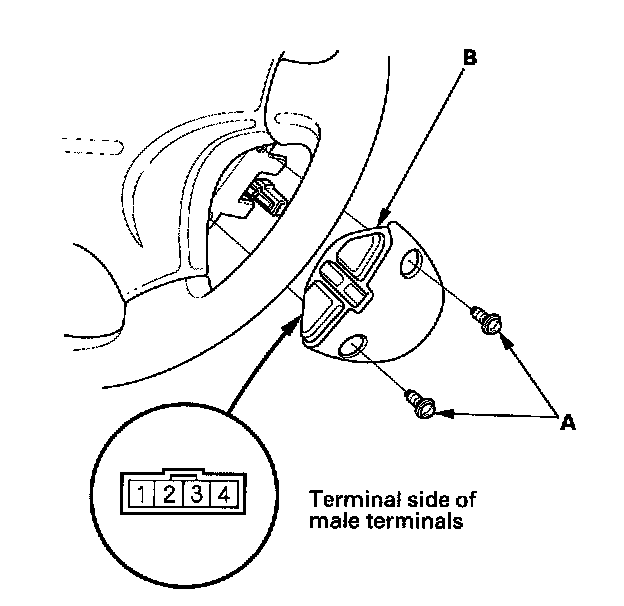 9. Carefully remove the set/resume/cancel switch cover (A) by prying between the cover and the switch (B) in the sequence shown.