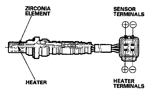 The heated oxygen sensors detect the oxygen content in the exhaust gas and send signals to the PCM which varies the duration of fuel injection accordingly. To stabilize its output, the sensor has an internal heater. The primary sensor is installed in the exhaust pipe.