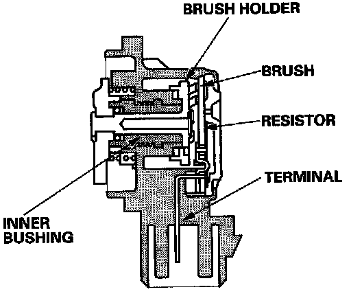 The TP sensor is a potentiometer connected to the throttle valve shaft. As the throttle position changes, the sensor varies the signal voltage to the ECM/PCM. The TP sensor is not replaceable apart from the throttle body.