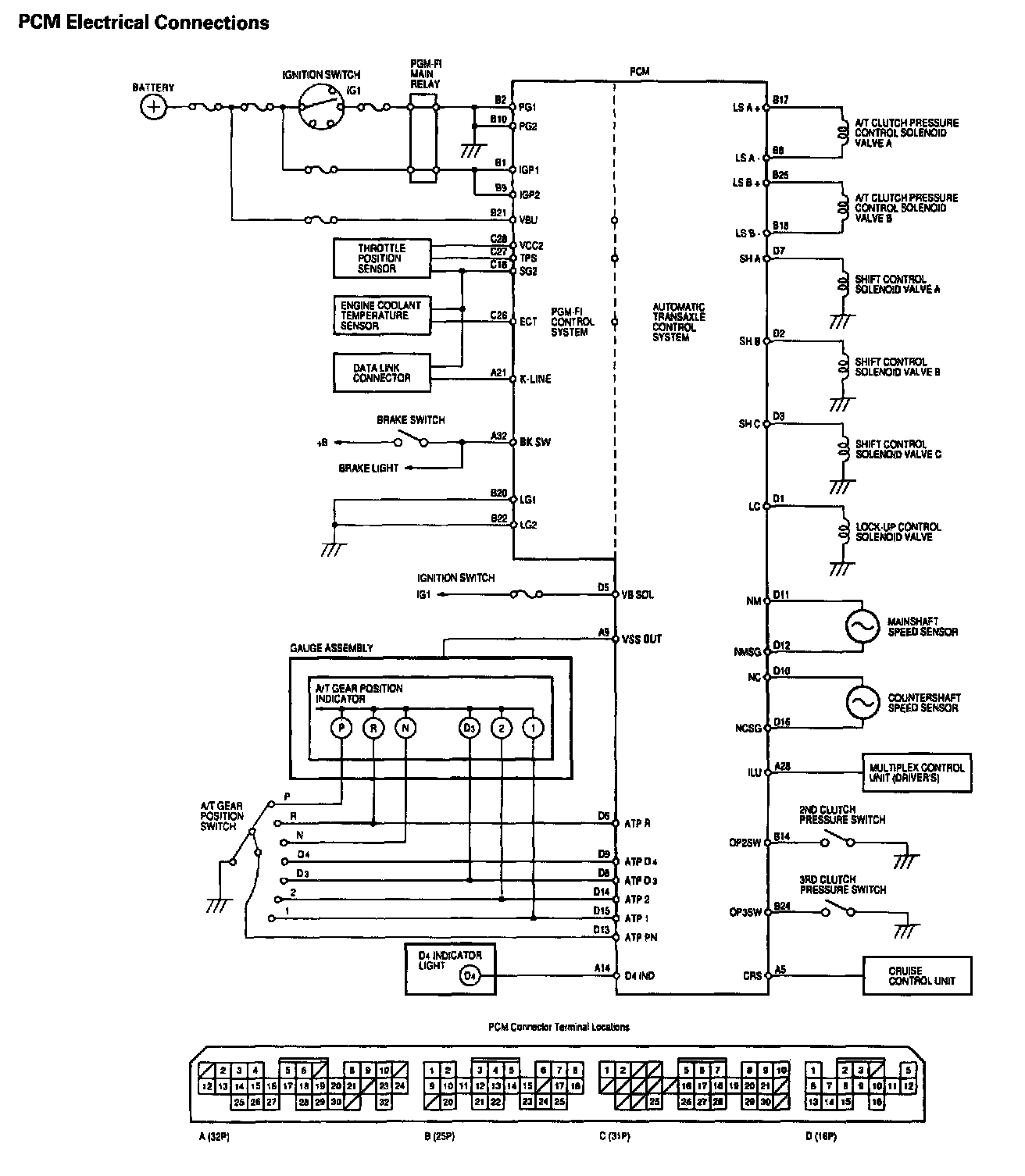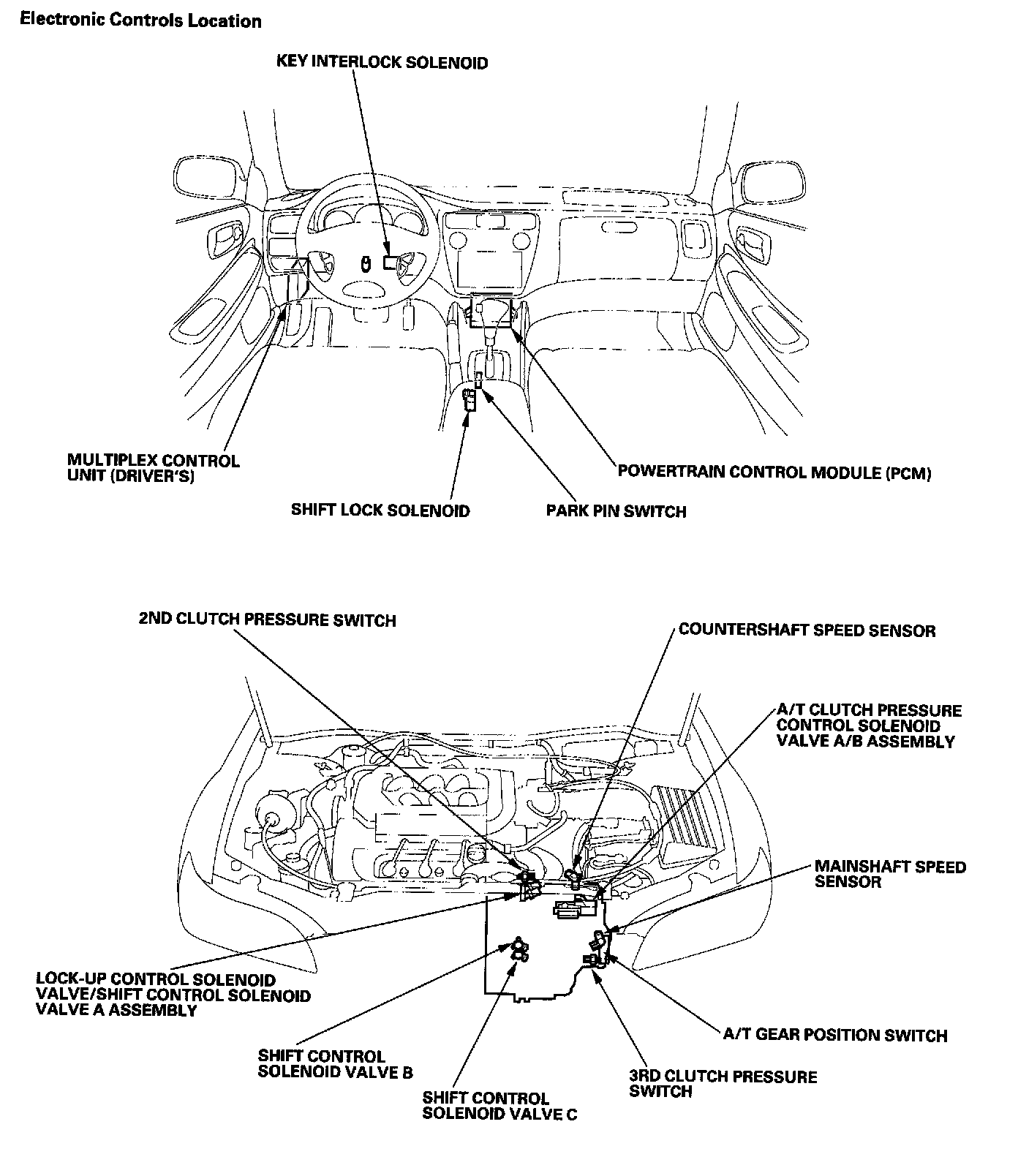 Shifting and lock-up are electronically controlled for comfortable driving under all conditions. The PCM is located below the dashboard, under the front lower panel behind the center console.
