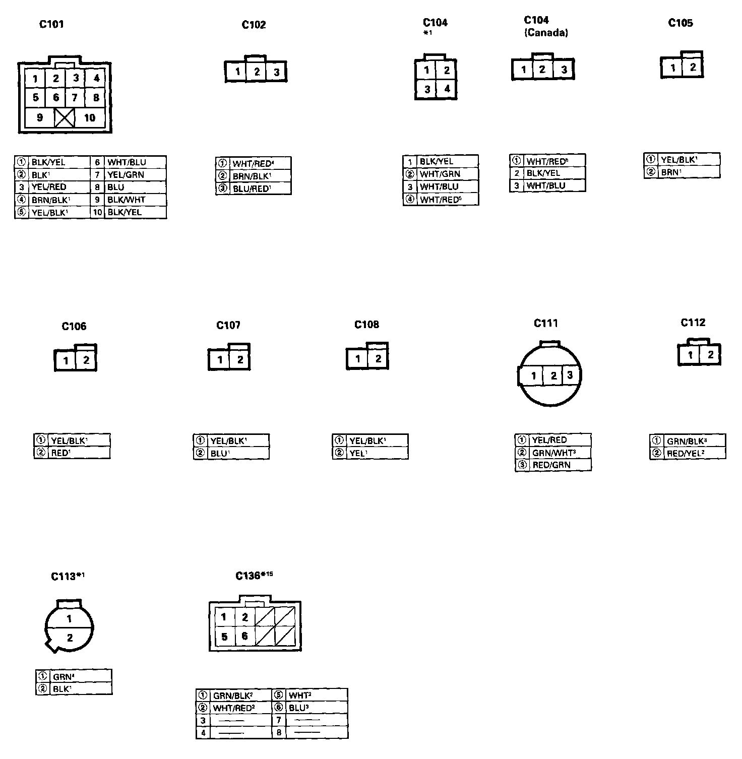 - Different wires with the same color have been given a number suffix to distinguish them (for example, YEL/BLK1 and YEL/BLK2 are not the same).