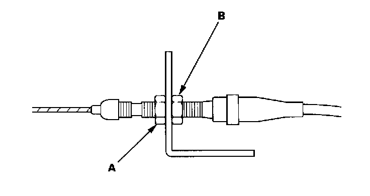 6. Pull the cable so that the adjusting nut (A) touches the bracket, and tighten the locknut (B).