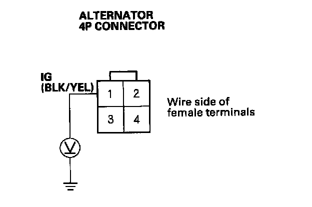 10. Measure the voltage at the No.1 terminal of the alternator 4P connector with the ignition switch ON (II).