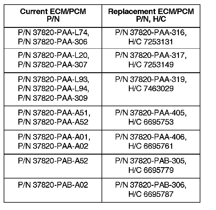 2. Match the part number you wrote down with the current ECM/PCM part number listed under PARTS INFORMATION, then get the correct replacement ECM/PCM.