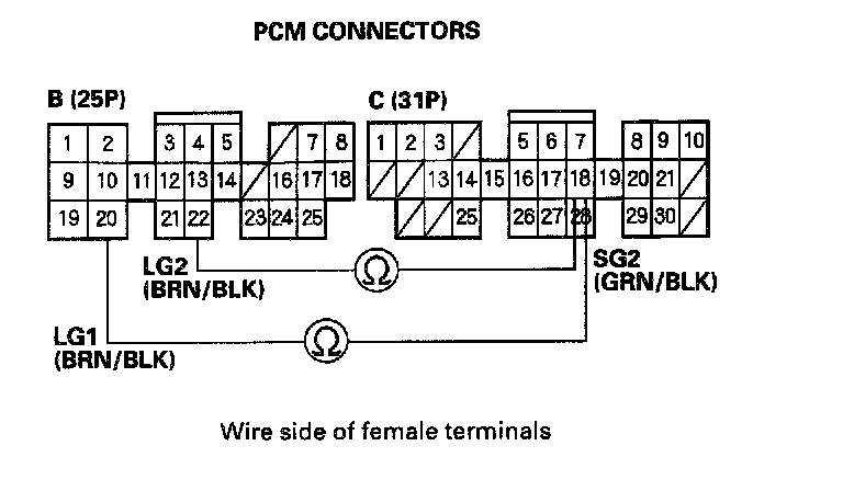 11. Reconnect PCM connectors A (32P) and B (25P).