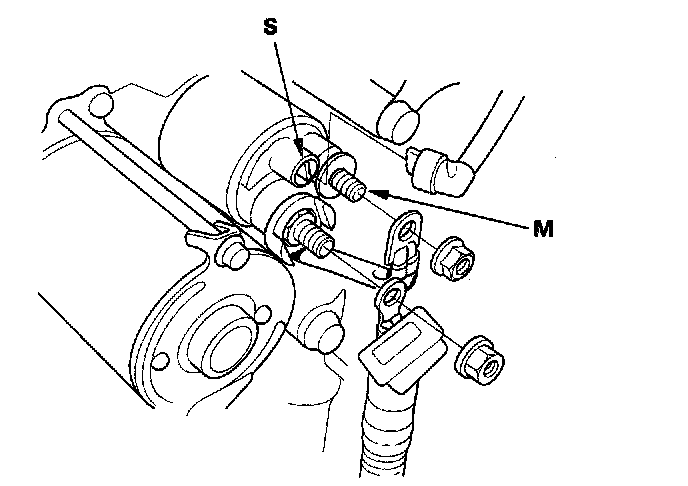 2. Check the pull-in coil for continuity between the S and M terminals. There should be continuity.
