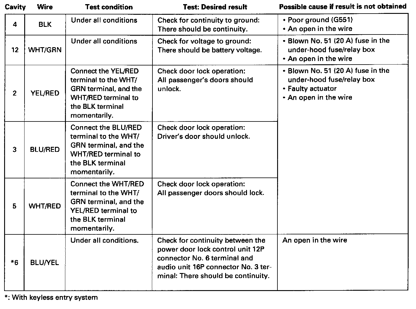 Control Unit Input Test / Without Keyless Entry System1. Remove the driver's door panel.