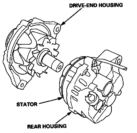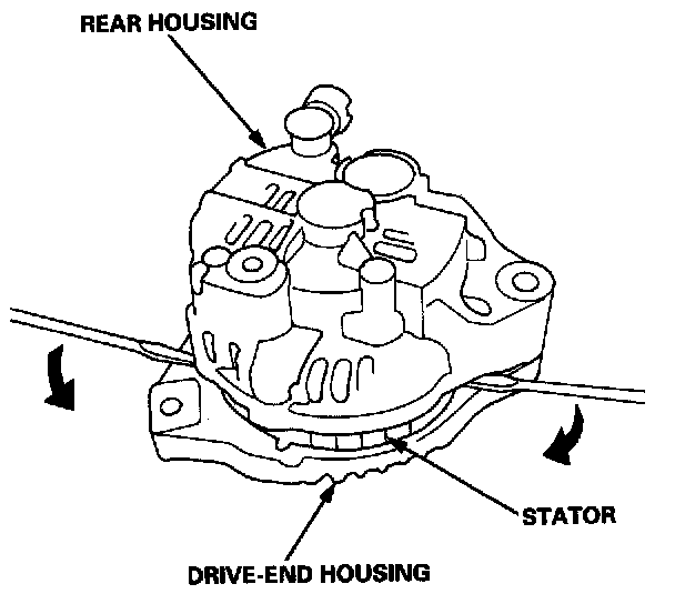 4. Separate the rear housing and drive-end housing with the stator attached to the rear housing.