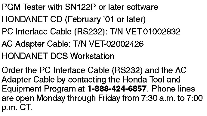 ** Beginning with PGM Tester software version SN122P and revised HONDANET software (contained on the February '01 HONDANET CD), you must also use the PGM Tester to capture and store DTC data, then download it to HONDANET 2000.**