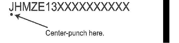4. Center-punch a completion mark below the first character of the engine compartment VIN: