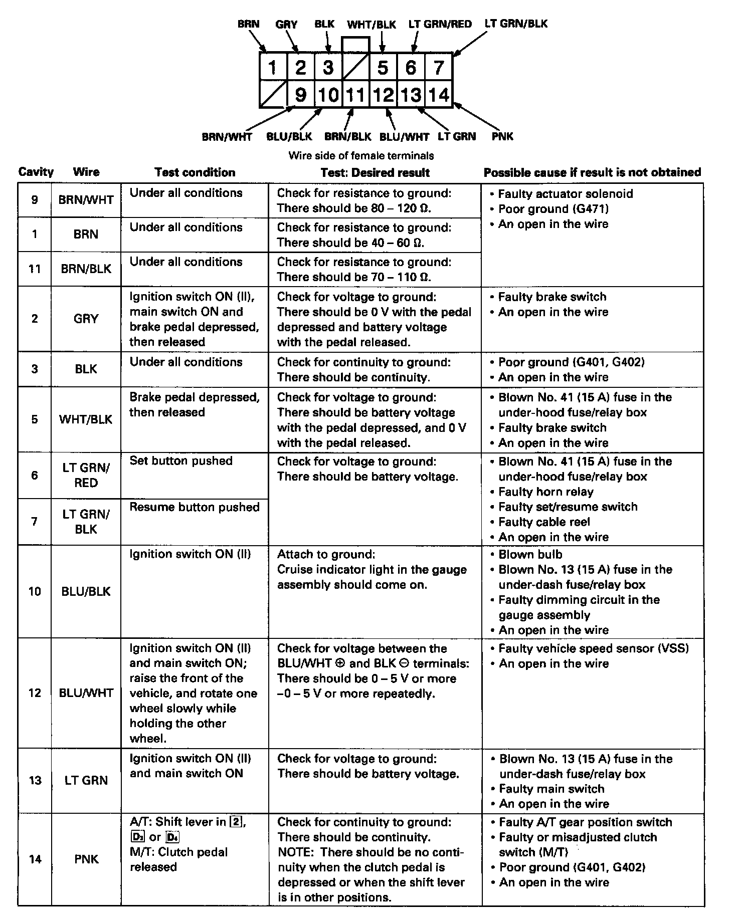 Cruise Control Module: Testing and Inspection