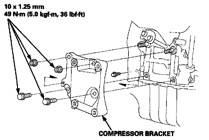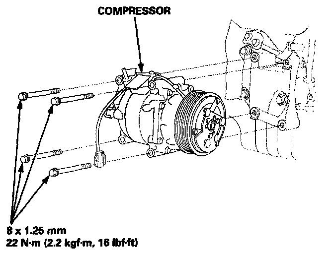 8. Remove the mounting bolts and the compressor.