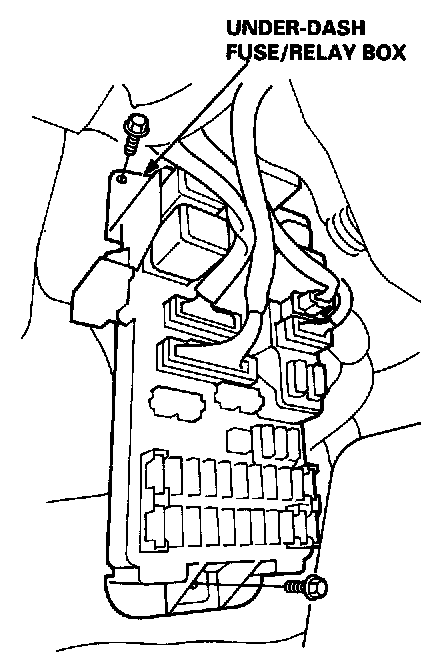 5. Remove the two mounting bolts, and pull the under-dash fuse/relay box away from the body.