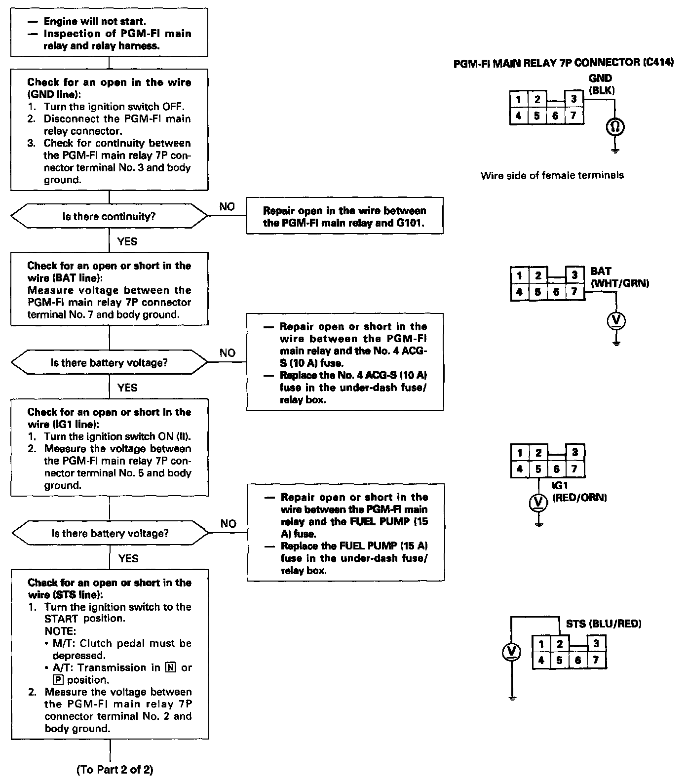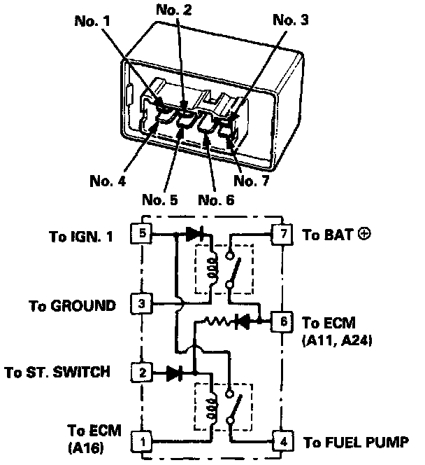 - If there is continuity, the PGM-FI main relay is OK. If the fuel pump still does not work, go to Harness Testing.