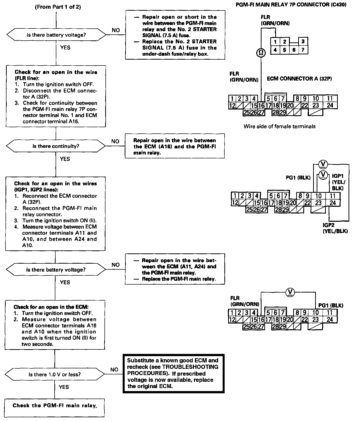 NOTE: If the engine starts and continues to run, the PGM-FI main relay is OK.