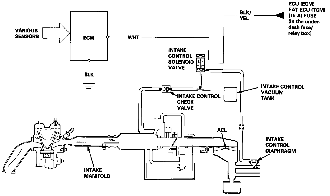 supplies ground to the intake control solenoid valve. This opens the solenoid valve sending intake manifold vacuum to the intake control diaphragm.