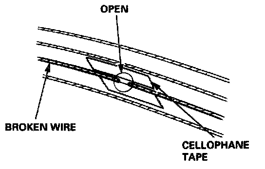 2. Carefully mask above and below the broken portion of the defogger wire with cellophane tape.