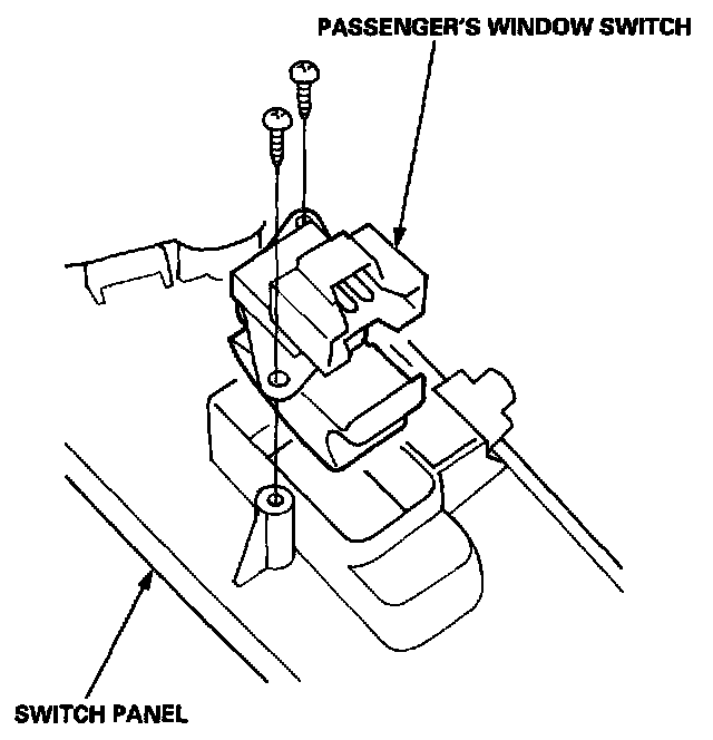 4. Remove the two mounting screws, then remove the passenger's switch from the switch panel.